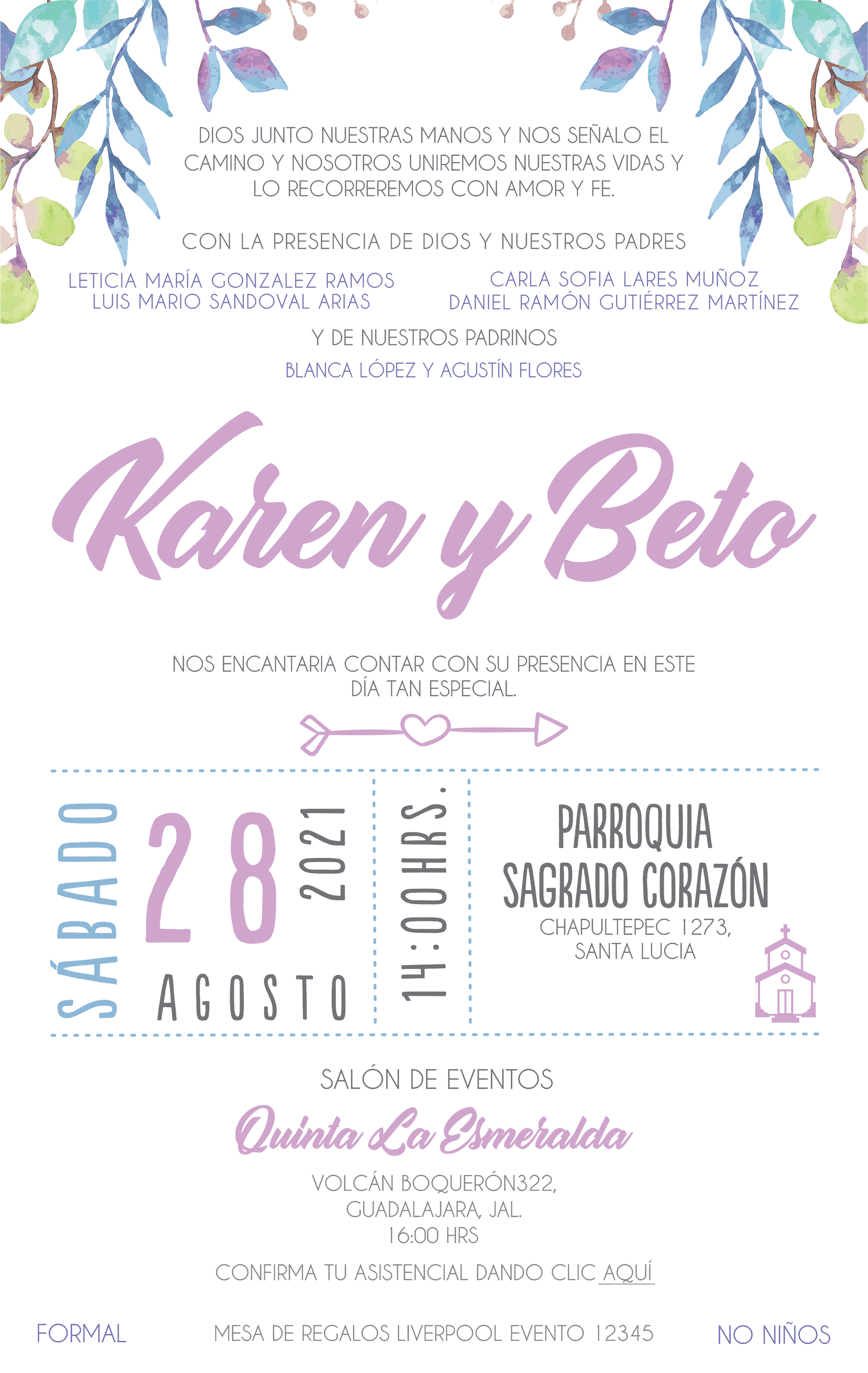 - Cuentas con Garantía de Cambio de Evento ( Solo se cambiara la fecha del mismo , el formato y otros datos permanecerán intactos ) . Si deseas cambiar el formato y/o nombres tendrás que comprar una nueva invitación .